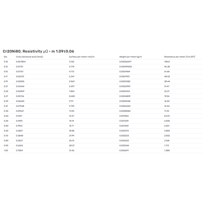 Nichrome wire er en austenitisk legeringstråd, der består af 80% nikkel og 20% krom. Det bruges ved driftstemperaturer på op til 1.200 ° C og har god modstand mod oxidation og korrosion. Endvidere har modstandstråd god formbarhed og duktilitet.